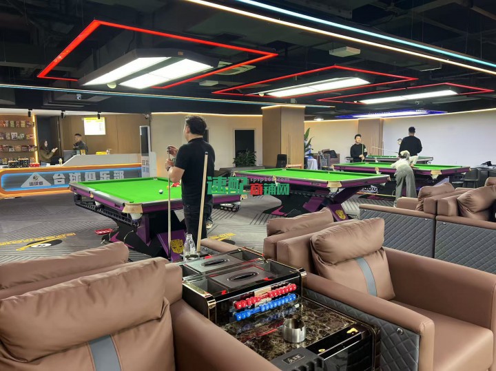 去年11月份才翻新的,店内有1个豪华独牙包房,大厅16张台球桌,有1张乔氏,两个机麻包房,带器材维修室,配有休息区、厨房、仓库,独立厕所,额外还有配电室。