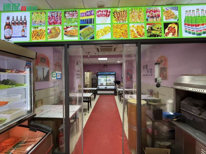 2.现在经营的是新疆烧烤店,有天然气,做了两年多了,生意很稳定,转角门面,招牌显眼,有外摆,旁边也就是小区的出入口,门前也是公交车站,对面距离天街也就一百多米,附近也挨着几个学校,人流量大,无业态限制,也可以空转。